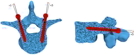 - Molinari, L.; Falcinelli, C.; Gizzi, A.; Di Martino, A. Effect of pedicle screw angles on the fracture risk of the human vertebra: A patient-specific computational model. J. Mech. Behav. Biomed. Mater. 2021, 116, 104359. [Google Scholar] [CrossRef]