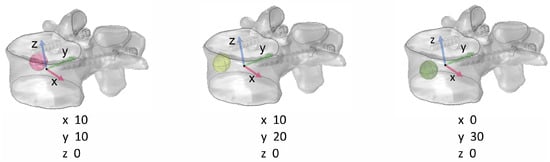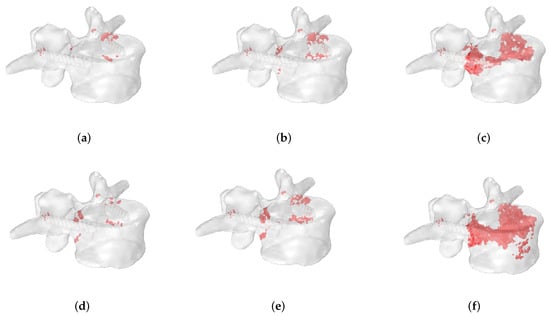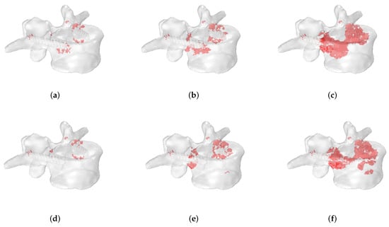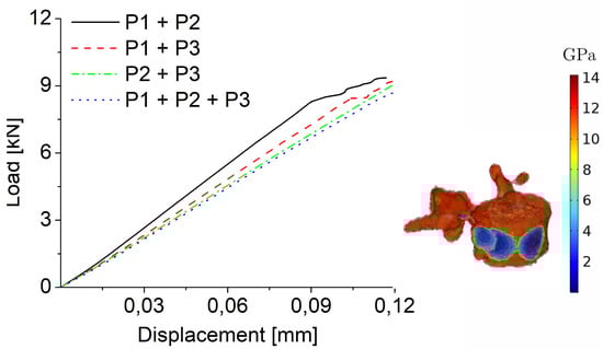 - Costa, M.C.; Bresani Campello, L.B.; Ryan, M.; Rochester, J.; Viceconti, M.; Dall’Ara, E. Effect of size and location of simulated lytic lesions on the structural properties of human vertebral bodies, a micro-finite element study. Bone Rep. 2020, 12, 100257. [Google Scholar] [CrossRef] [PubMed]