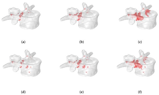 - Palanca, M.; Barbanti-Brodano, G.; Marras, D.; Marciante, M.; Serra, M.; Gasbarrini, A.; Dall’Ara, E.; Cristofolini, L. Type, size, and position of metastatic lesions explain the deformation of the vertebrae under complex loading conditions. Bone 2021, 151, 116028. [Google Scholar] [CrossRef]
