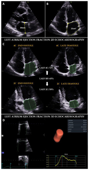 - Alfuhied, A.; Kanagala, P.; McCann, G.P.; Singh, A. Multi-modality assessment and role of left atrial function as an imaging biomarker in cardiovascular disease. Int. J. Cardiovasc. Imaging 2021, 37, 3355–3369. [Google Scholar] [CrossRef]