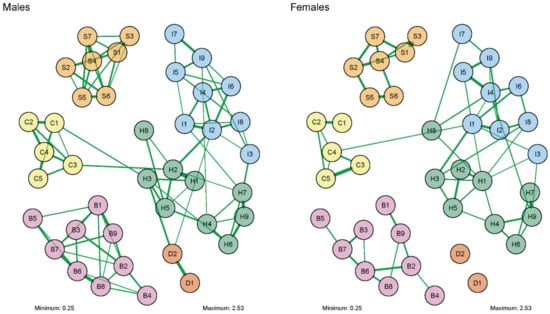 2.5.2. Comparison of Symptom Networks by Gender