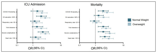 Multivariate risk factor analysis for ICU admission and mortality in normal weight and overweight/obese patients with COVID-19.