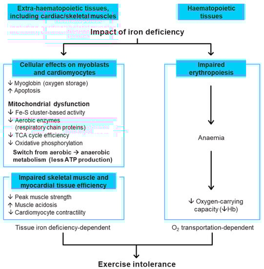 - Stugiewicz, M.; Tkaczyszyn, M.; Kasztura, M.; Banasiak, W.; Ponikowski, P.; Jankowska, E.A. The influence of iron deficiency on the functioning of skeletal muscles: Experimental evidence and clinical implications. Eur. J. Heart Fail. 2016, 18, 762–773. [Google Scholar] [CrossRef]