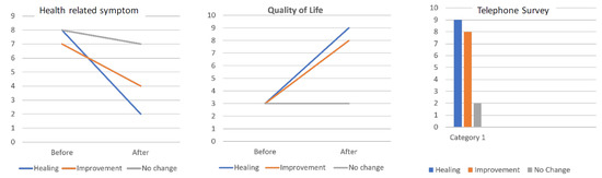 Results of the survey of health and symptoms, quality of life and degree of satisfaction by the telephone survey.