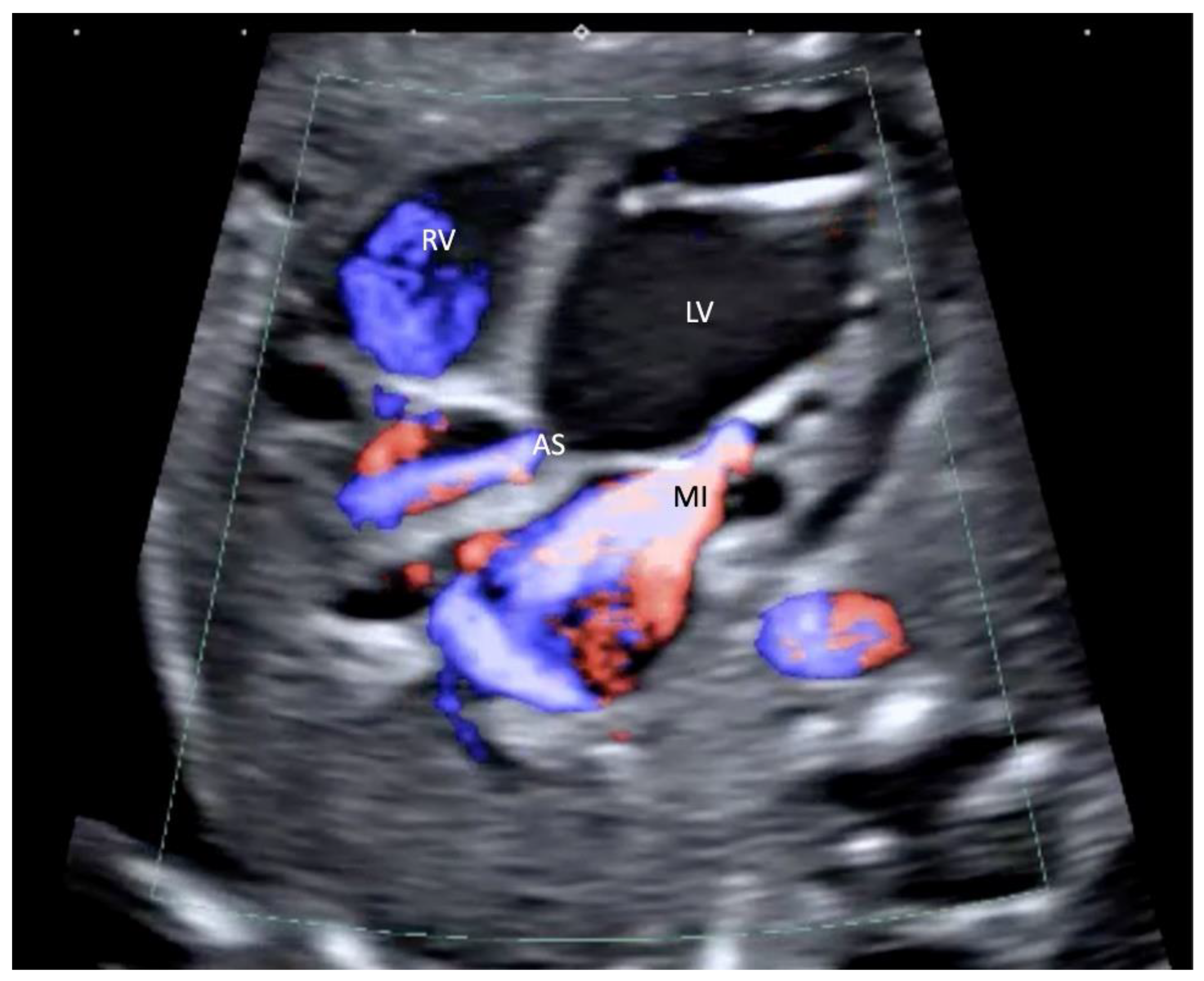 - Gardiner, H.M.; Kovacevic, A.; Tulzer, G.; Sarkola, T.; Herberg, U.; Dangel, J.; Öhman, A.; Bartrons, J.; Carvalho, J.S.; Jicinska, H.; et al. Fetal Working Group of the AEPC. Natural history of 107 cases of fetal aortic stenosis from a European multicenter retrospective study. Ultrasound Obstet. Gynecol. 2016, 48, 373–381. [Google Scholar] [CrossRef] [PubMed]