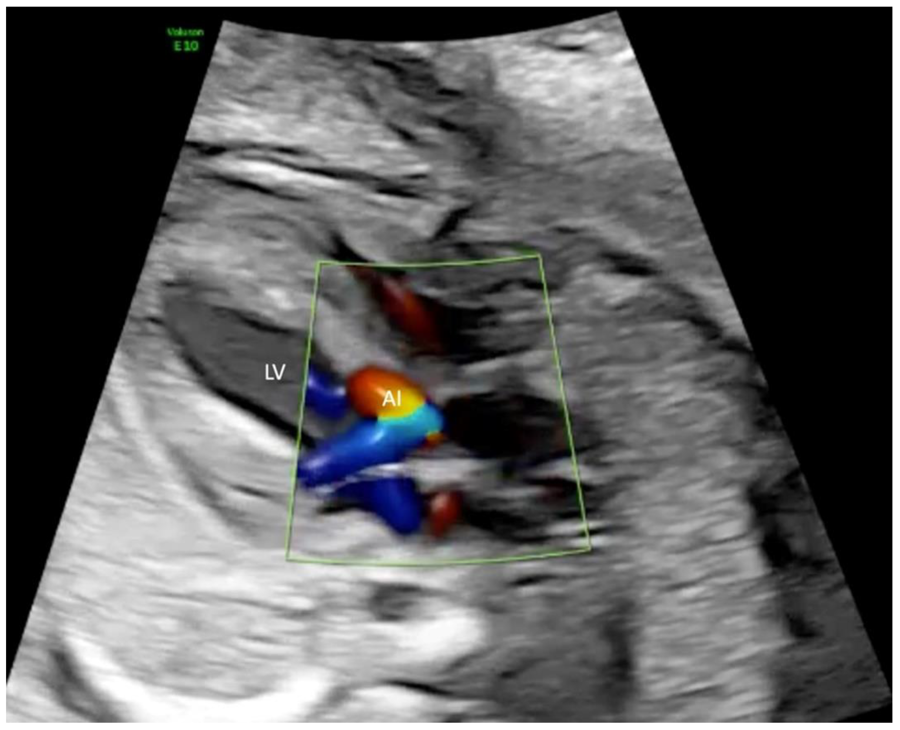 - Kovacevic, A.; Öhman, A.; Tulzer, G.; Herberg, U.; Dangel, J.; Carvalho, J.S.; Fesslova, V.; Jicinska, H.; Sarkola, T.; Pedroza, C.; et al. the Fetal Working Group of the AEPC. Fetal hemodynamic response to aortic valvuloplasty and postnatal outcome: A European multicenter study: Fetal hemodynamic response to aortic valvuloplasty. Ultrasound Obstet. Gynecol. 2018, 52, 221–229. [Google Scholar] [CrossRef] [PubMed]