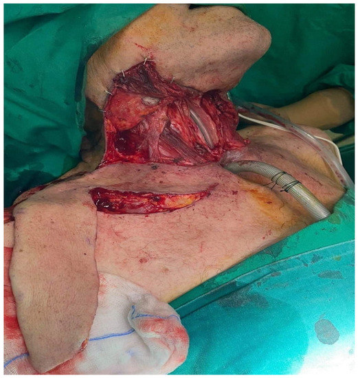 - Suzuki, H.; Iwaki, S.; Higaki, E.; Abe, T.; Sawabe, M.; Beppu, S.; Kobayashi, Y.; Nishikawa, D.; Terada, H.; Hanai, N. Supraclavicular Artery Flap for Oral Reconstruction Prior to Esophagectomy during the COVID-19 Pandemic: A Case Report. In Vivo 2021, 35, 3597–3601. [Google Scholar] [CrossRef]
