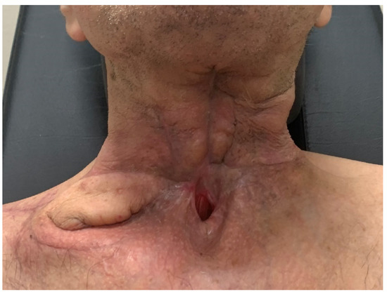- Escalante, D.; Vincent, A.G.; Wang, W.; Shokri, T.; Ducic, Y. Reconstructive Options during Nonfunctional Laryngectomy. Laryngoscope 2021, 131, E1510–E1513. [Google Scholar] [CrossRef]
