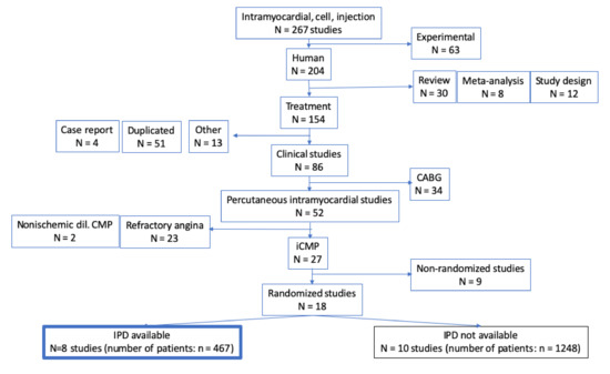 - Fisher, S.A.; Doree, C.; Mathur, A.; Martin-Rendon, E. Meta-analysis of cell therapy trials for patients with heart failure. Circ. Res. 2015, 116, 1361–1377. [Google Scholar] [CrossRef]