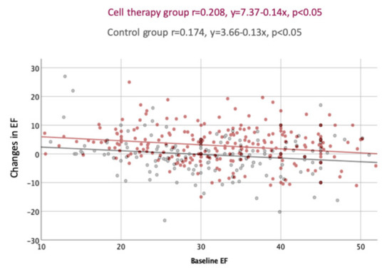 The number of injected cells did not influence the changes in EF (Figure 5).