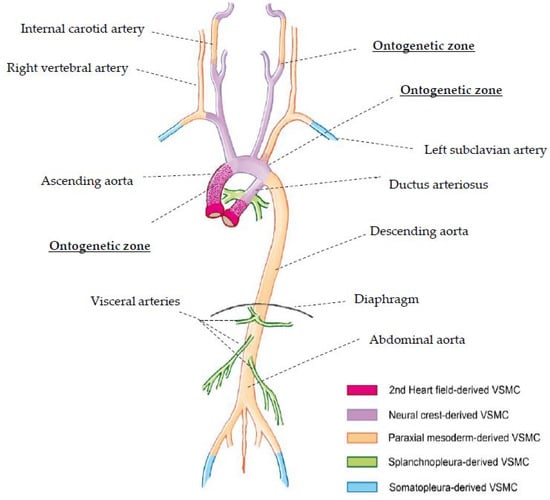 - Pfaltzgraff, E.R.; Bader, D. Heterogeneity in vascular smooth muscle cell embryonic origin in relation to adult structure, physiology, and disease. Dev. Dyn. 2015, 244, 410–416. [Google Scholar] [CrossRef] [PubMed] [Green Version]