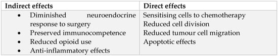 The effects of local anaesthetics on tumour progression can be further classified into indirect and direct effects, as shown below in Figure 3.