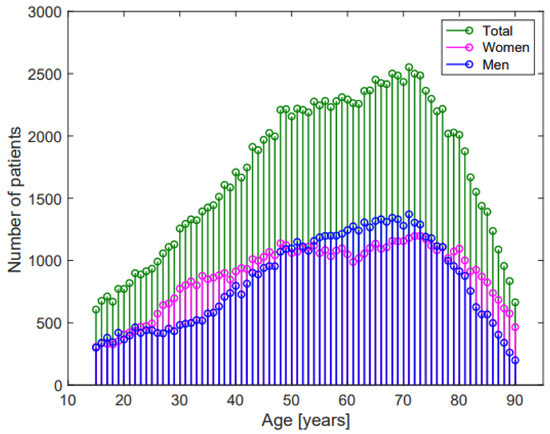 Ageing produces structural and functional changes in the cardiovascular system, which involves the appearance of cardiovascular diseases and comorbidities [14]. The consequences of these conditions are the appearance of vascular stiffness, fibrosis, hypertrophy, and the involution of muscular tissue, valves, and arteries [15]. Moreover, with increasing age, heart position into the thorax changes, thoracic impedance grows, the use of heart conduction-modifying drugs increases, and the exposure to environmental factors rises [16,17].