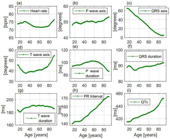 Most of the considered parameters have a clinical significance and a prognostic role with respect to the appearance of atrial fibrillation, sudden cardiovascular death, and major cardiovascular events [32,33,34], so their precise characterization is crucial. This work demonstrated, in a large contemporary primary population, that ECG is influenced by ageing, sex, cardiovascular diseases, and comorbidities but is difficult to be defined the weight of each of these conditions.