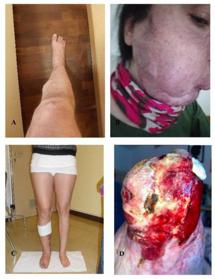 Lymphovenous malformations. (A) patient 13, (B) patient 14, (C) patient 15, (D) patient 16.