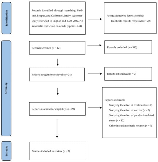The aim of this article was to review all the studies that have specifically investigated the impact of COVID-19 illness on menstrual cycle changes and to assess if the correlation between the two is direct, or if menstrual changes are caused by other confounding factors such as stress, vaccines, or a change in lifestyle. Four hundred and forty-four articles were identified and screened at the title and abstract levels (Figure 1).