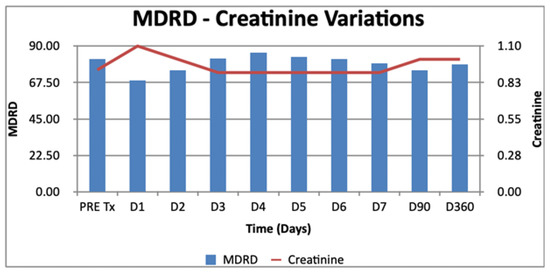 Moreover, we explored the evolution of creatinine and MDRD in the early postoperative period, as shown in Figure 2.