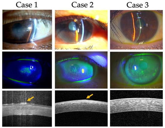 The subjects were three patients and six eyes with unilateral neurotrophic keratopathy due to neurosurgery. We performed slit-lamp microscopic examination and anterior segment optical coherence tomography (AS-OCT) imaging (The SPECTRALIS® OCT2 Module with Anterior Segment Module, Heidelberg Engineering GmbH., Heidelberg, Germany).