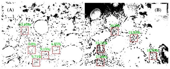 In the formula, represents the sample image’s light intensity, represents background light intensity (when there is no lighting), and represents the light intensity of the reference image on optical slides of different wavelengths. After taking all the sample images, a program batch processes the images of all 13 bands and saves the combined image gray value as the reflectance. The average reflectance of the sample’s region of interest can be extracted, as can the reflectance of a certain point. At the same time, although problems such as unavoidable noise and uneven illumination may appear in the image, the average processing method is used to remove image noise. Specifically, this is done by switching the light source to collect five images in the region of interest continuously. Then, the image preprocessing algorithm averages the pixel values of each group of five images, thus reducing interference caused by random noise. To correct uneven illumination of the image, we have adopted an adaptive two-dimensional gamma function method which can better correct image uniformity [15], brighten overly dark places, darken overly bright places, and improve the image’s overall contrast and clarity.