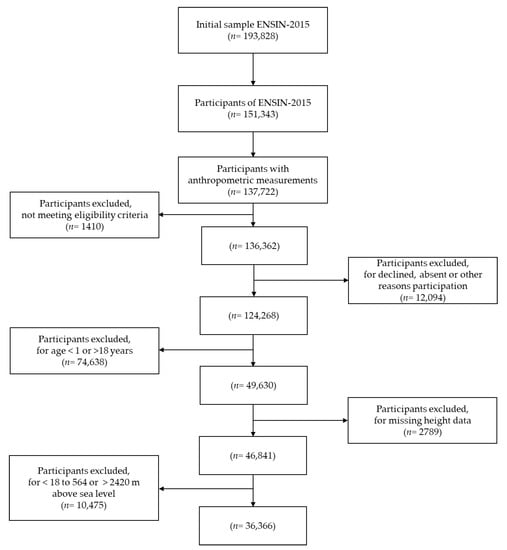 Flowchart depicting final study-subject selection from the ENSIN-2015 population.