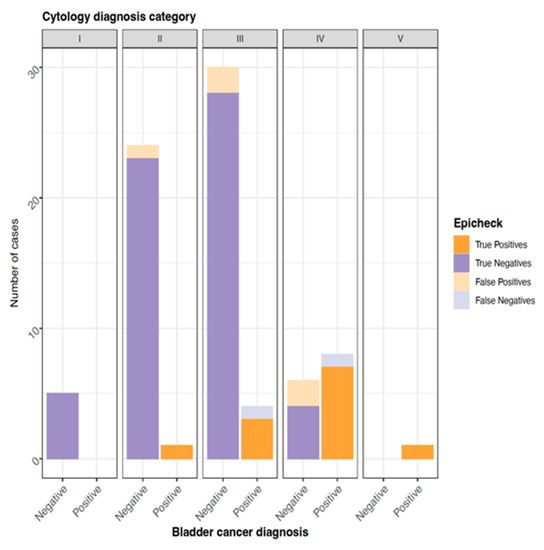 - Trenti, E.; D’Elia, C.; Mian, C.; Schwienbacher, C.; Hanspeter, E.; Pycha, A.; Kafka, M.; Degener, S.; Danuser, H.; Roth, S.; et al. Diagnostic predictive value of the Bladder EpiCheck test in the follow-up of patients with non-muscle-invasive bladder cancer. Cancer Cytopathol. 2019, 127, 465–469. [Google Scholar] [CrossRef]