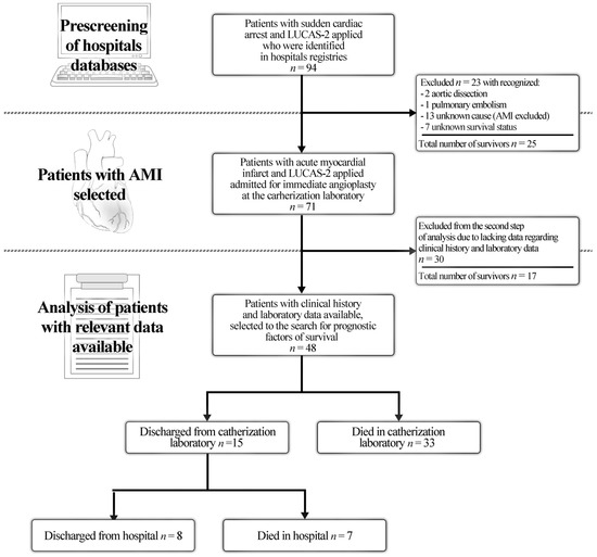 The final study group of patients with AMI that received mechanical chest compressions using the LUCAS-2 system and had complete data (medical history and laboratory data) comprised 48 patients (Figure 1).