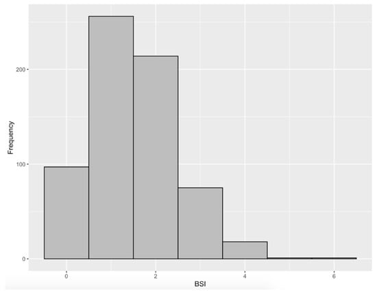 Frequency histogram of the BSI score (n = 662).
