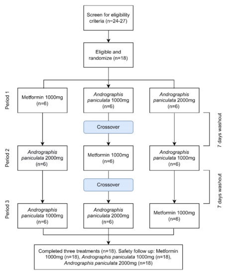 APA StyleTee, K. B., Ibrahim, L., Hashim, N. M., Saiman, M. Z., Zakaria, Z. H., & Huri, H. Z. (2022). Pharmacokinetics and Metabolomic Profiling of Metformin and Andrographis paniculata: A Protocol for a Crossover Randomised Controlled Trial. Journal of Clinical Medicine, 11(14), 3931. https://doi.org/10.3390/jcm11143931