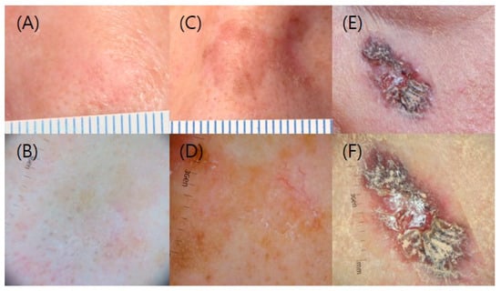 - Lallas, A.; Argenziano, G.; Zendri, E.; Moscarella, E.; Longo, C.; Grenzi, L.; Pellacani, G.; Zalaudek, I. Update on non-melanoma skin cancer and the value of dermoscopy in its diagnosis and treatment monitoring. Expert Rev. Anticancer Ther. 2013, 13, 541–558. [Google Scholar] [CrossRef] [PubMed]