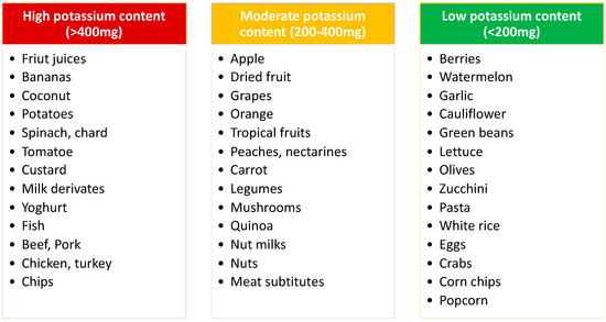 - Picard, K.; Silva, M.I.B.; Mager, D.; Richard, C. Dietary Potassium Intake and Risk of Chronic Kidney Disease Progression in Predialysis Patients with Chronic Kidney Disease: A Systematic Review. Adv. Nutr. Int. Rev. J. 2020, 11, 1002–1015. [Google Scholar] [CrossRef]
