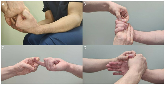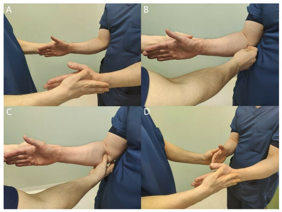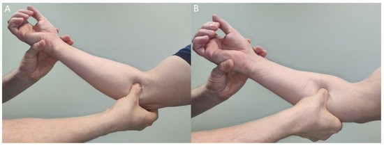 Patients with difficult aching pain in the forearm may only have minor muscle weaknesses. Careful, thorough muscle testing, compared with the unaffected side, is imperative to get a general perception of the neuropathy (Figure 5, Figure 6, Figure 7, Figure 8 and Figure 9) [23,50,52].