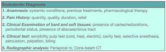- Ricucci, D.; Loghin, S.; Siqueira, J.F., Jr. Correlation between clinical and histologic pulp diagnoses. J. Endod. 2014, 40, 1932–1939. [Google Scholar] [CrossRef] [PubMed]