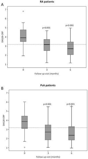 - Fransen, J.; van Riel, P.L.C.M. The Disease Activity Score and the EULAR Response Criteria. Clin. Exp. Rheumatol. 2005, 23, S93–S99. [Google Scholar] [CrossRef]