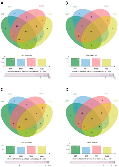- Bardou, P.; Mariette, J.; Escudie, F.; Djemiel, C.; Klopp, C. jvenn: An interactive Venn diagram viewer. BMC Bioinform. 2014, 15, 293. [Google Scholar] [CrossRef]