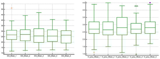 Box-and-whisker plots for ICC for 2D SWE PLUS and Vi PLUS measures.