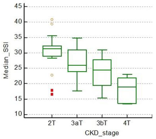 As the CKD stage advances, our results indicate a clear decline in mean 2D SWE PLUS measures. Table 1 and Figure 6 both highlight this fact.