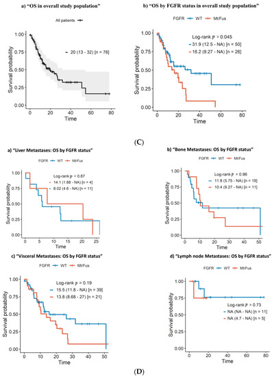 Unfortunately, since all patients had received several types of treatment, this study could not differentiate between a prognostic or predictive role of FGFR GAs. Thus, the outcome could be influenced by the response to treatments rather than by the biological action of these alterations.