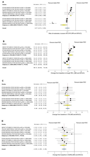 Lastly, since only four studies passed the strict inclusion criteria of our protocol, it was not possible to carry out subset analyses in specific COPD populations to assess if ICS/LABA/LAMA FDCs may really be considered a precision medicine tool.