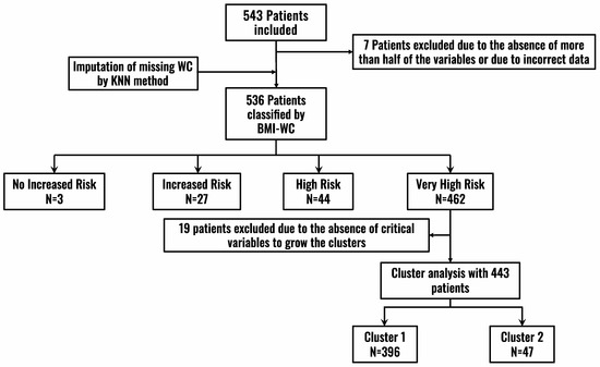 Patient inclusion flowchart. BMI: Body Mass Index; KNN: k-nearest neighbors (KNN) algorithm; WC: Waist Circumference.