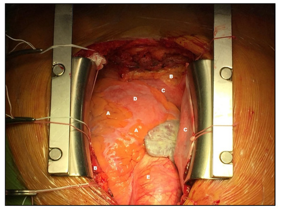 Anatomical description. Epicardial fat (A). Pericardial fat (B). Pericardium (C). The myocardium (D). Aorta (E). Photo collected from own practice and obtained with patient’s consent.