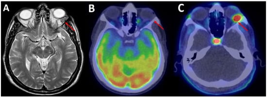 - Hammes, J.; Kobe, C.; Hilgenberg, U.; Lieb, W.E.; Drzezga, A. Orbital Hemangiopericytoma in 68Ga-Prostate-Specific Membrane Antigen-HBED-CC PET/CT. Clin. Nucl. Med. 2017, 42, 812–814. [Google Scholar] [CrossRef]