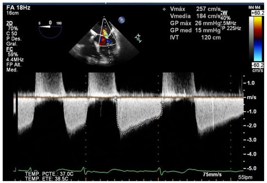 TEE allows us to study the basal mitral area (which must be at least more than 4 cm2), and the mobility, flexibility, and thickness of the leaflets in order to avoid significant mitral stenosis when one or more clips are implanted. Likewise, TEE is essential in the evaluation of the appearance of mitral stenosis after grasping. Medium gradients greater than 5 mmHg are not acceptable since they have been related to worse outcomes [19] (Figure 3). When this happens, the grasping must be carried out again to try to avoid the stenosis, and the implant must be abandoned when this is not possible.