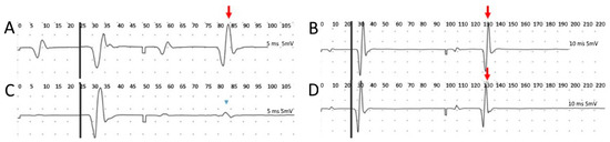 - Britton, T.C.; Meyer, B.U.; Herdmann, J.; Benecke, R. Clinical use of the magnetic stimulator in the investigation of peripheral conduction time. Muscle Nerve 1990, 13, 396–406. [Google Scholar] [CrossRef]