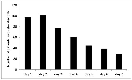 Number of patients with elevated cardiac troponin I in the first 7 days after trauma.