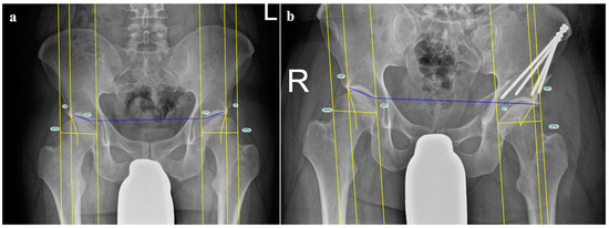 As DDH occurs predominantly in women, and mostly younger patients become candidates for hip preservation surgery, PAO is mostly performed in a population of female patients of childbearing age [11]. Previous reports have shown differing results regarding changes in birth canal morphology after different types of pelvic osteotomies. While a study by Ishimatsu showed that 17% of patients had birth canal diameters under the cutoff value for increased risk of the need for a cesarean section after curved periacetabular osteotomy [12], other analyses found no significant changes in birth canal diameters in women after PAO [13,14]. There is, however, insufficient evidence for the use of X-ray pelvimetry in determining the best delivery type in women [15].
