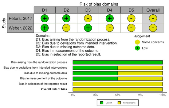 - Sterne, J.A.C.; Savović, J.; Page, M.J.; Elbers, R.G.; Blencowe, N.S.; Boutron, I.; Cates, C.J.; Cheng, H.-Y.; Corbett, M.S.; Eldridge, S.M.; et al. RoB 2: A revised tool for assessing risk of bias in randomised trials. BMJ 2019, 366, l4898. [Google Scholar] [CrossRef] [PubMed]