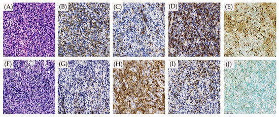 - Dojcinov, S.D.; Fend, F.; Quintanilla-Martinez, L. EBV-Positive Lymphoproliferations of B-T-and NK-Cell Derivation in Non-Immunocompromised Hosts. Pathogens 2018, 7, 28. [Google Scholar] [CrossRef] [Green Version]