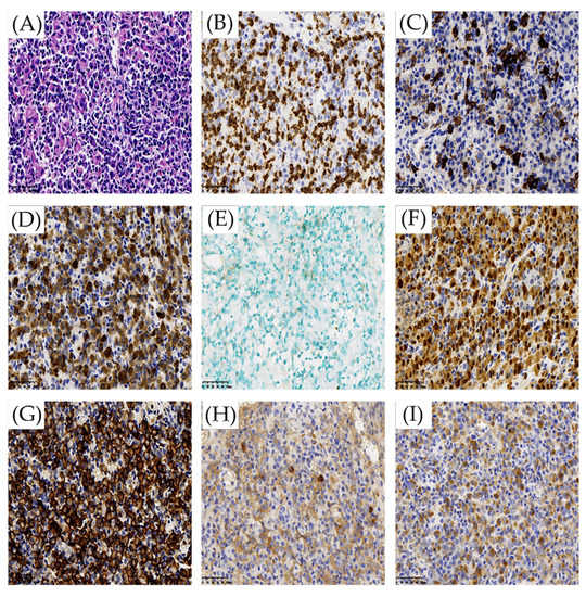 - WHO Classification of Tumors Editorial Board (Ed.). WHO Classification of Tumors Haematopoietic and Lymphoid Tissues, 4th ed.; IARC: Lyon, France, 2017. [Google Scholar]