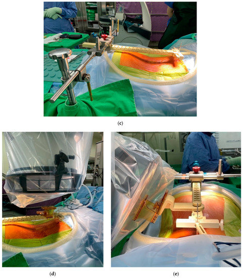 - Kantelhardt, S.R.; Martinez, R.; Baerwinkel, S.; Burger, R.; Giese, A.; Rohde, V. Perioperative course and accuracy of screw positioning in conventional, open robotic-guided and percutaneous robotic-guided, pedicle screw placement. Eur. Spine J. 2011, 20, 860–868. [Google Scholar] [CrossRef] [PubMed]