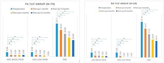 | FG TLIF Group (n = 79) | Ro TLIF Group (n = 29) | p Value | |